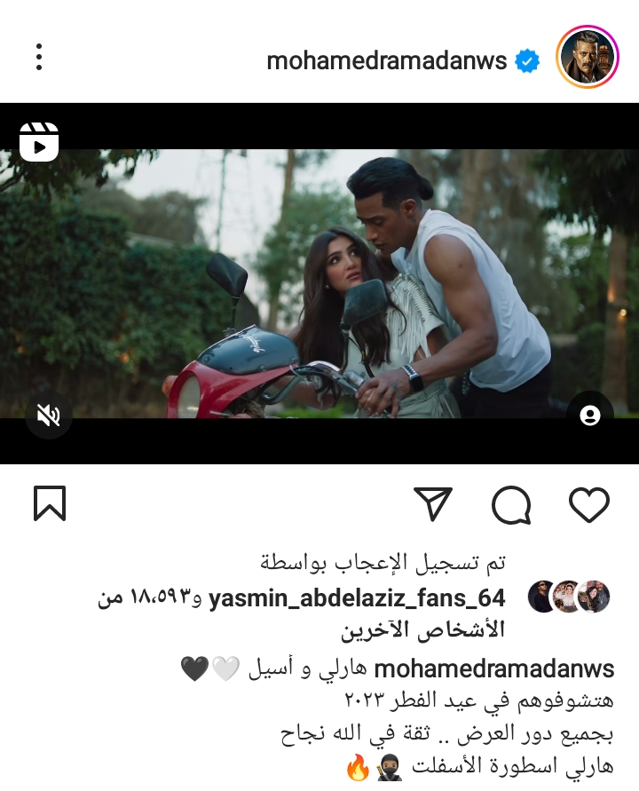 وحول هذا المشهد، علق محمد رمضان عبر حسابه على إنستجرام، قائلا: الحمد لله الحافظ، صورنا واحد من أصعب مشاهد فيلم هارلي من أعلى كوبري قصر النيل بإذن الله عيد الفطر ميعادنا والسينما مكانا.