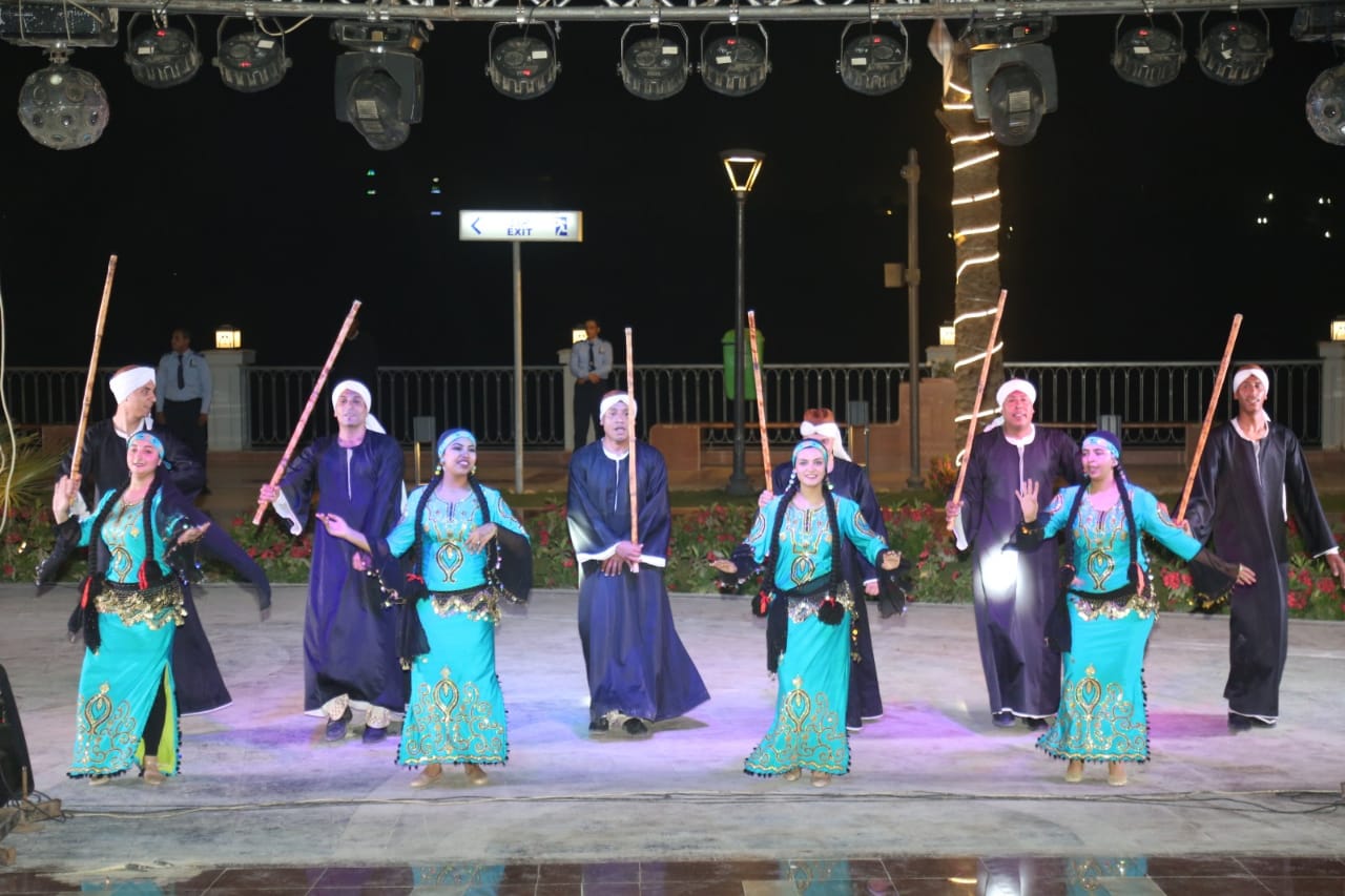 وزيرة الثقافة ومحافظ بني سويف يشهدان الليلة السابعة من ليالي رمضان بالممشى السياحي بالمحافظة | صور