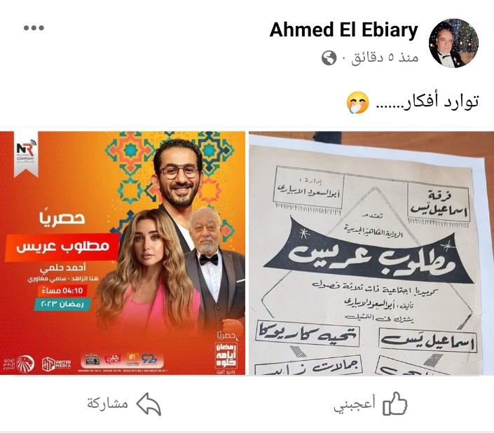 ونشر الإبياري صورتين، لسيناريو الفيلم وبوستر المسلسل، عبر حسابه الشخصي بموقع التواصل الاجتماعي فيس بوك، وعلق عليها ساخرا: توارد أفكار.