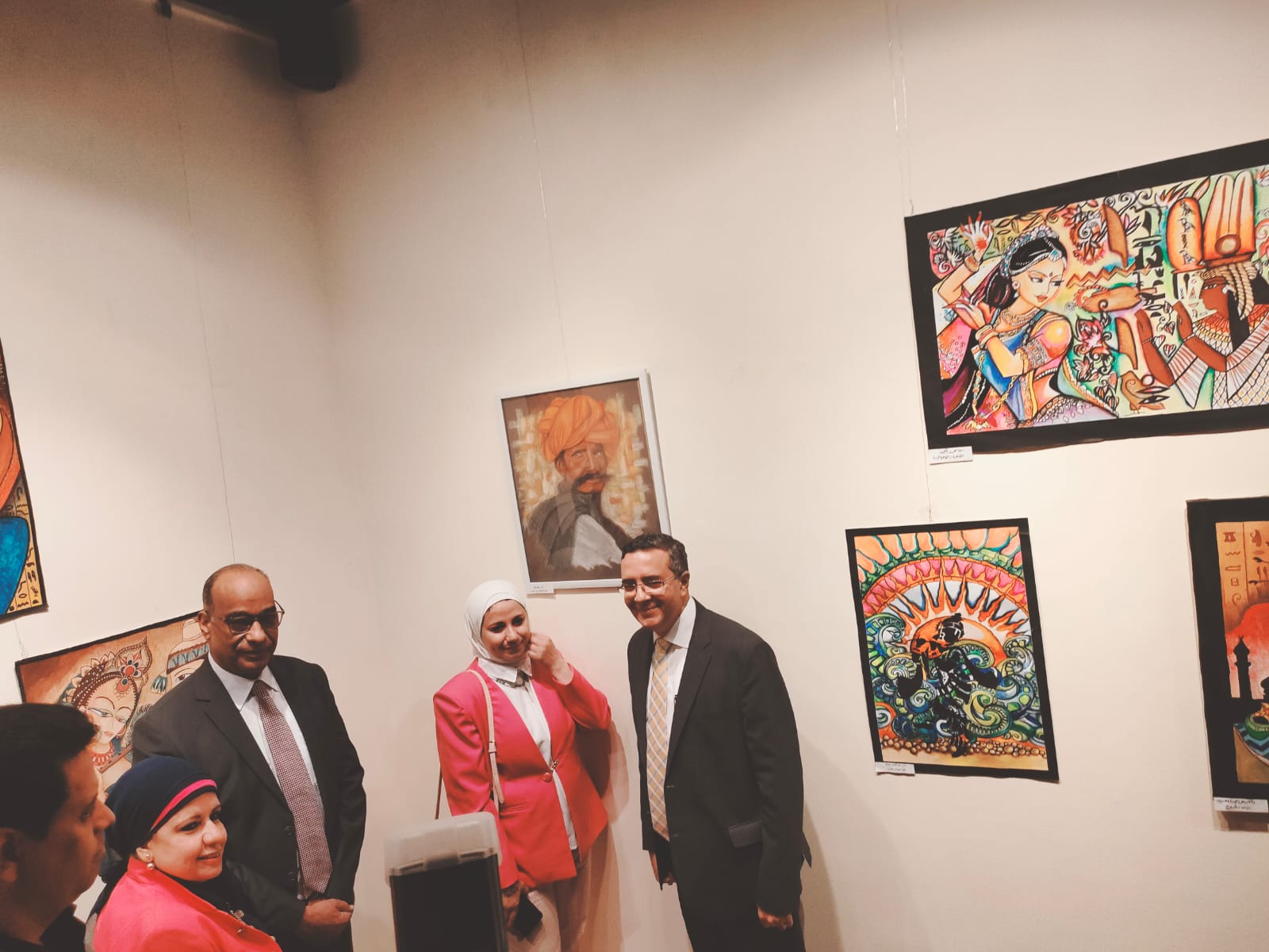 السفير الهندي بالقاهرة يفتتح معرض رسم لوحات من الهند.. ويتفقد أعمال معلمي التربية