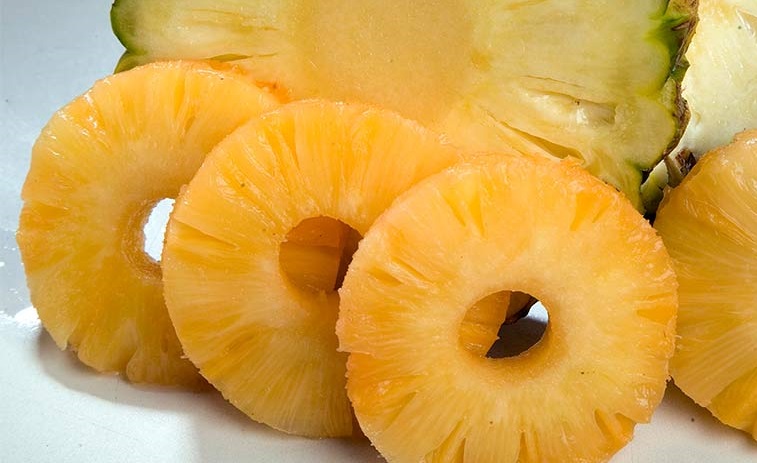 - تتضمن الخطوة الأولى تقشير الأناناس إلى شرائح