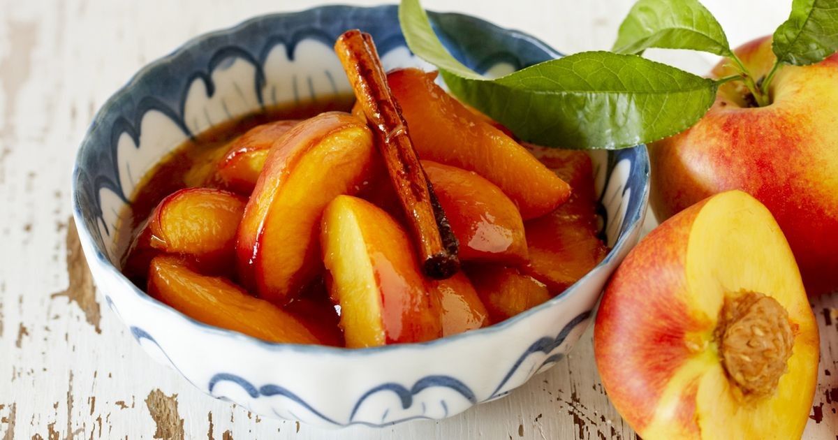 - يتم تقطيع الخوخ إلى قطع صغيرة على أن يتم وضعه في وعاء ويضاف إليها السكر البني، وعصير الليمون، بالإضافة إلى اليانسون والملح والماء والفانيليا على النار.