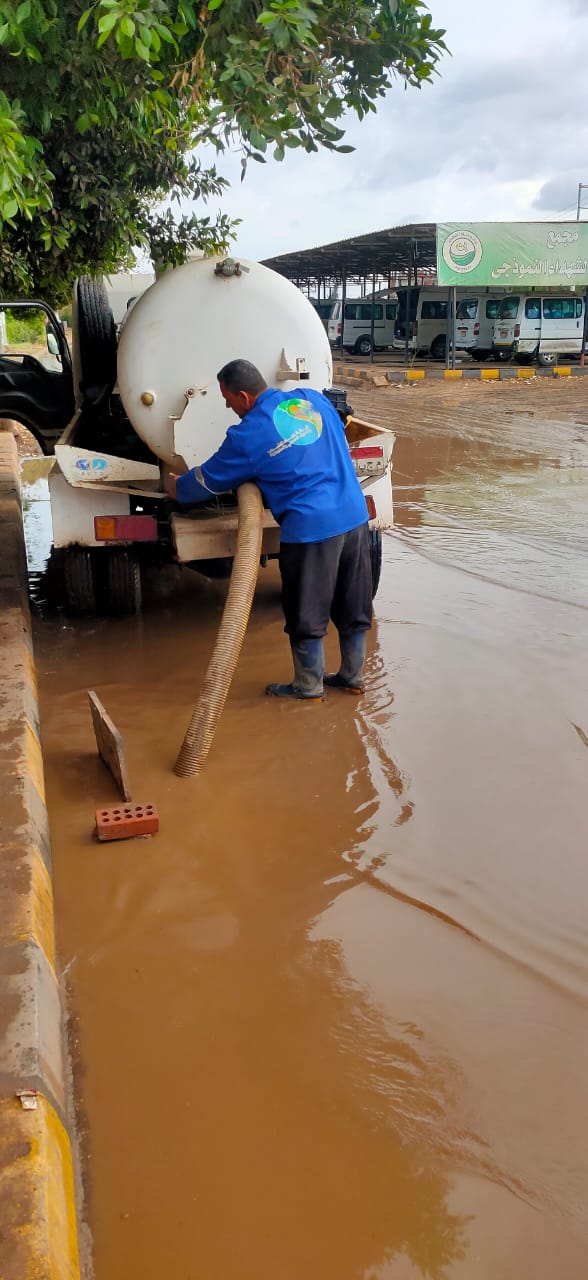 وكلف رؤساء الأفرع بمتابعة عملية شفط مياه الأمطار بالشوارع، وعلى الفور تم الدفع بالمعدات اللازمة من عربات الكسح وماكينات الشفط لمواجهة موجة الطقس السيئ منذ مساء أمس وحتى صباح اليوم الأربعاء 12-4-2023م.