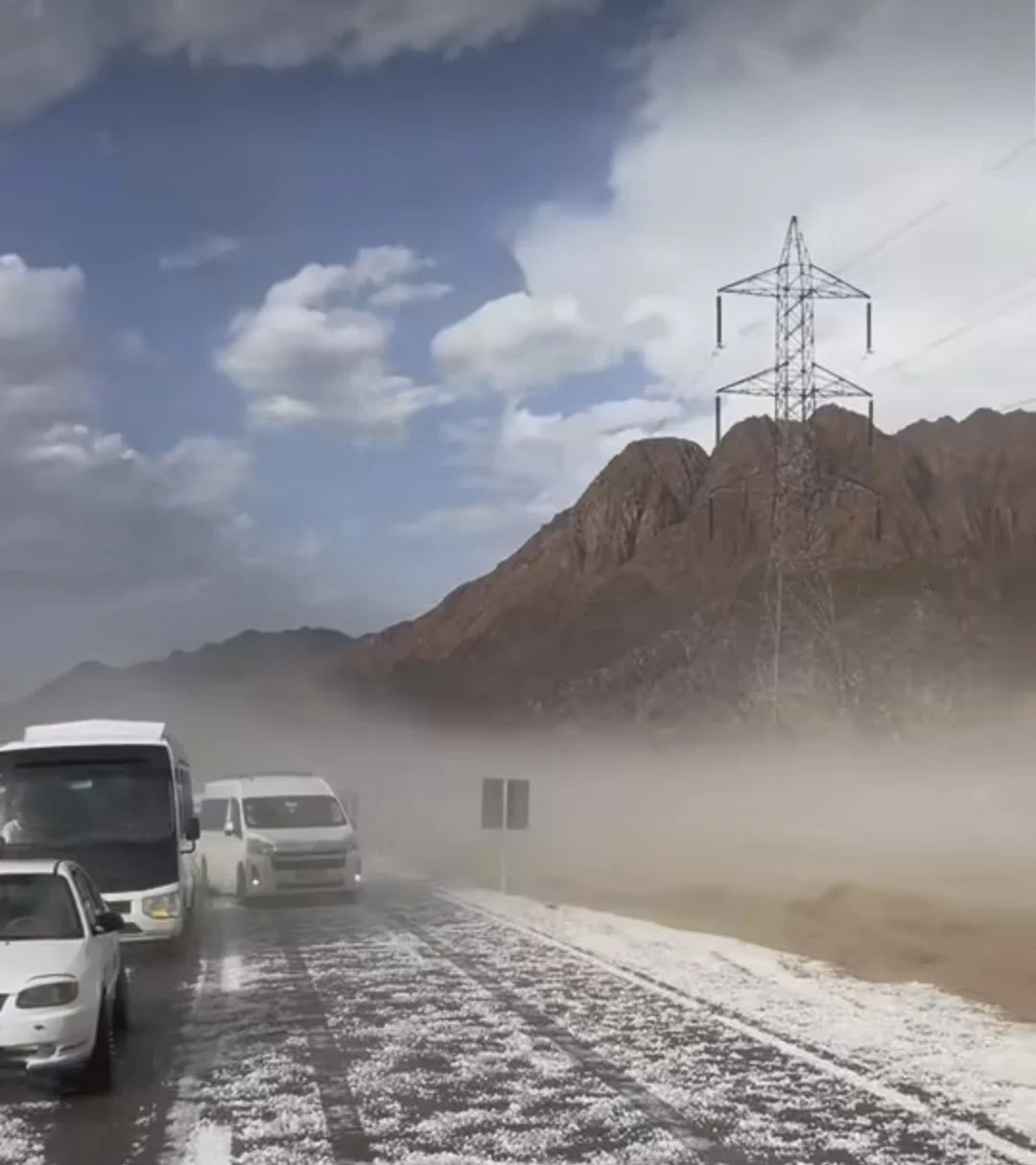 شاهد سيول شرم الشيخ ومدينة دهب وتساقط الثلوج على رمال الصحراء | فيديو