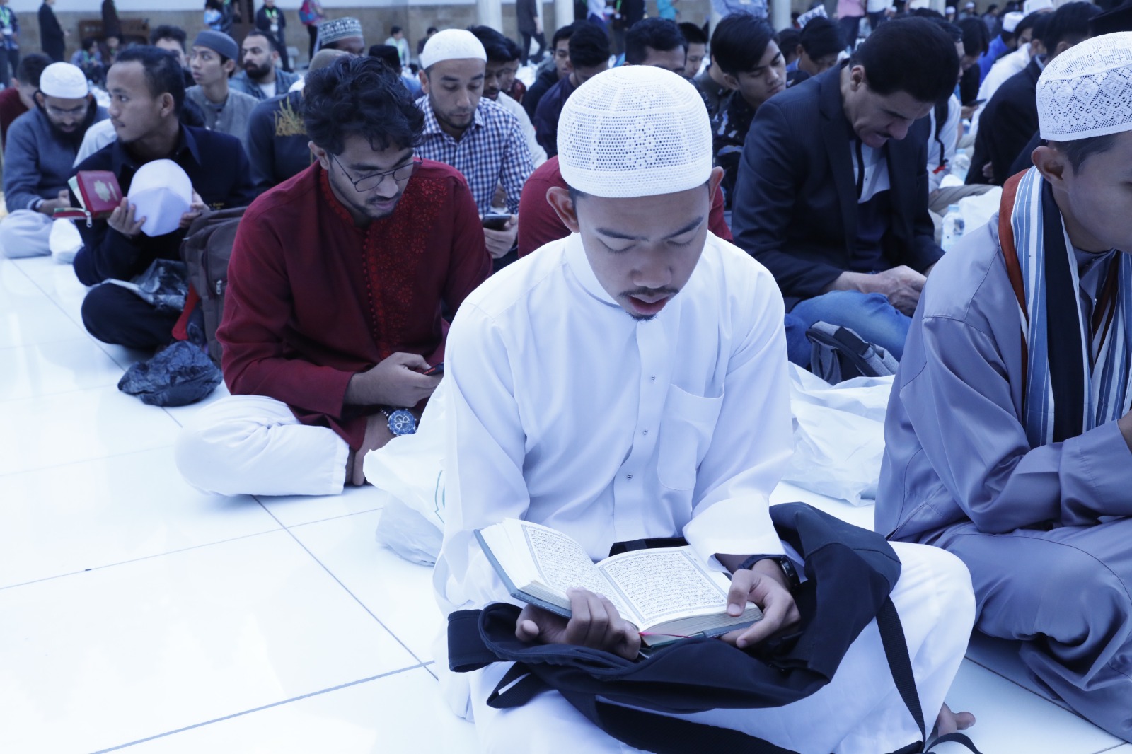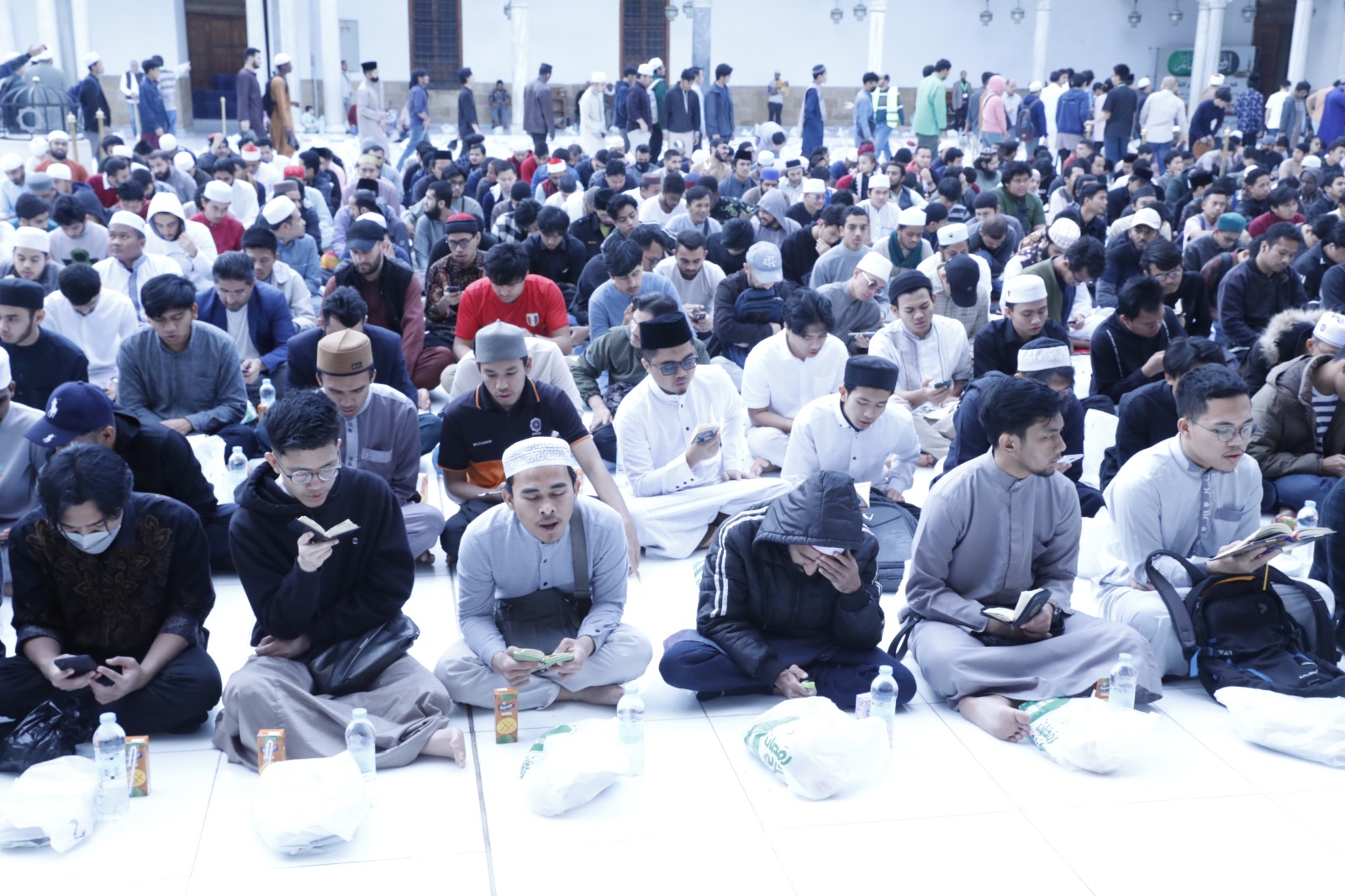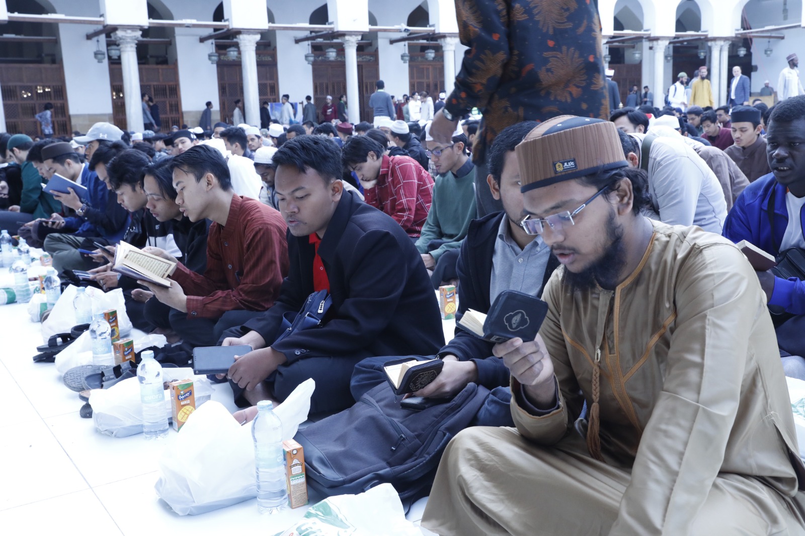 وفي المقابل استعد الطلاب الوافدون للإفطار الجماعي بتلاوة القرآن الكريم والذكر والتسبيح والتبتل والدعاء إلى الله تعالى، راجين الله أن يتقبل صيامهم وصلاتهم ودعاءهم وسائر أعمالهم.