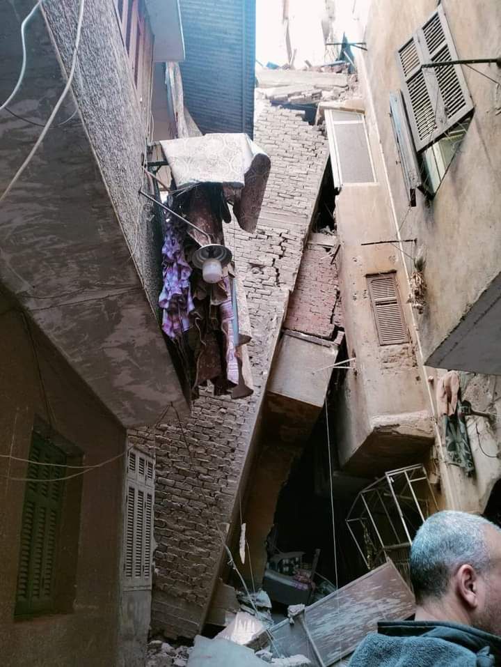 وانتقلت قوة من حي حدائق القبة، لمعاينة آثار انهيار العقار والوقوف على الأسباب التي أدت لميله.