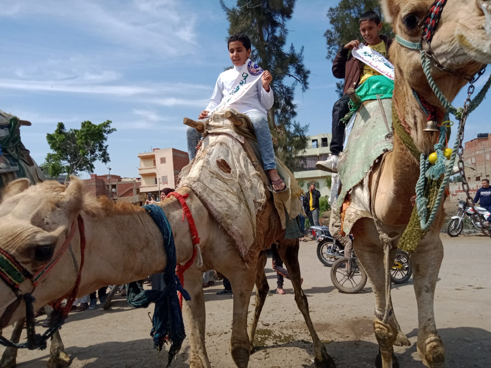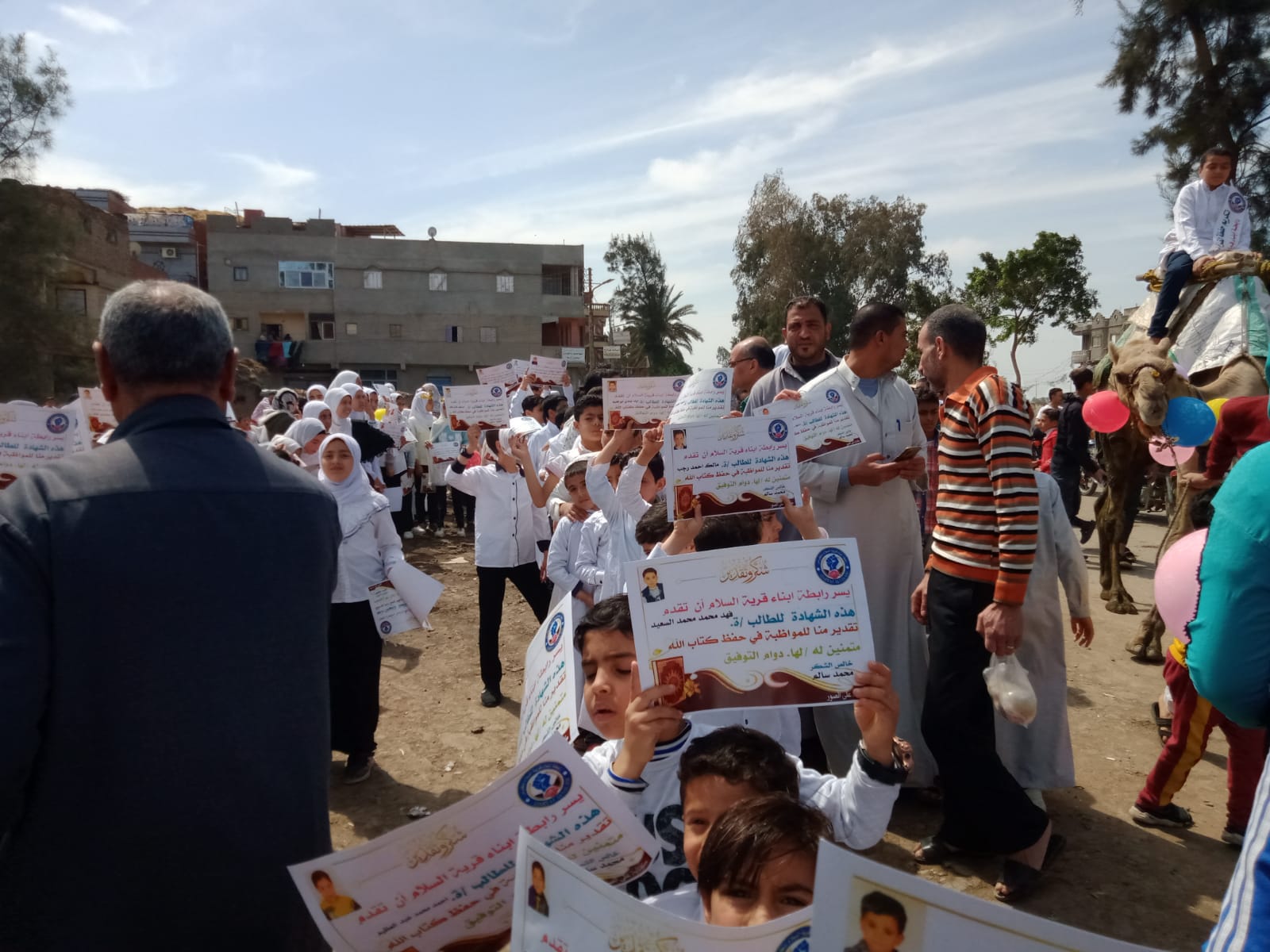 بزفة على الجمال تطوف قرية السلام، التابعة لمركز دكرنس في محافظة الدقهلية، تم تكريم عدد من حفظة القرآن الكريم وتجاوز عدد الطلاب 150 طالبا ما بين الذكور والإناث.