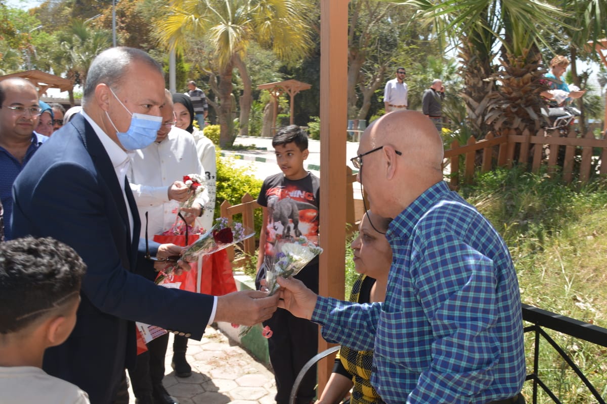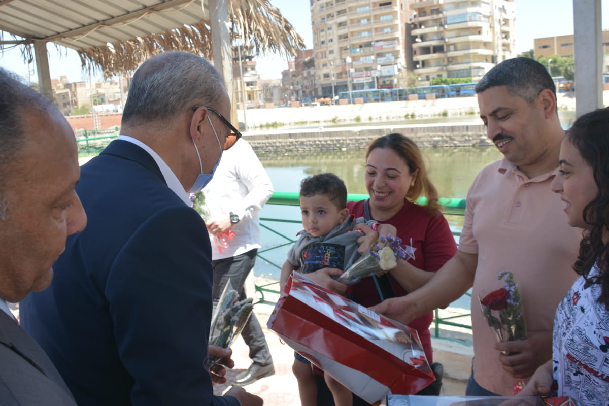 كما التقى المحافظ عددا من الأسر الذين جاءوا من مدن المحافظة المختلفة ومن المحافظات المجاورة للاستمتاع بجو وحدائق مدينة القناطر الخيرية لقضاء عيد شم النسيم، حيث هنأهم المحافظ بالعيد وتقديم الورود لهم وتمنى لهم قضاء يوم سعيد وسط حدائق القناطر التي تتسم بالأشجار النادرة والهواء النقي.