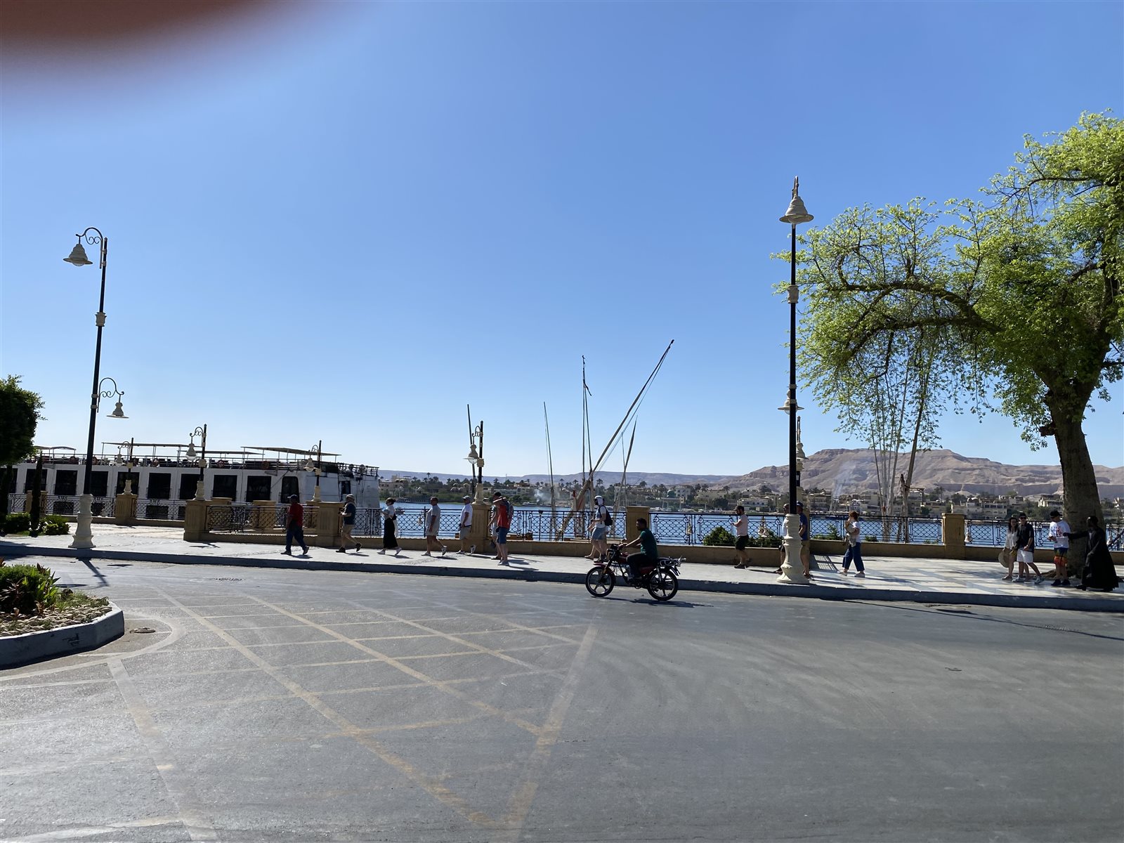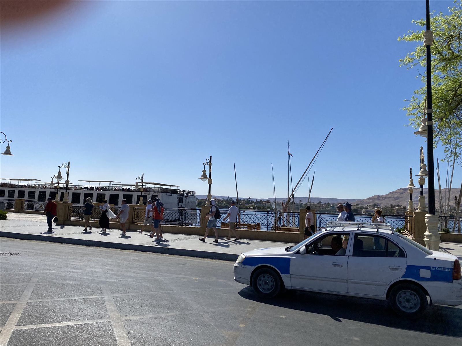 وملأ الكورنيش بالأقصر مجموعات السائحين من الأجانب الذين كانوا يتجولون مستمتعين بأشعة الشمس المشرقة، وبالتقاط الصور للنيل ومعبد الأقصر، دون وجود للمتنزهين من أبناء الأقصر.