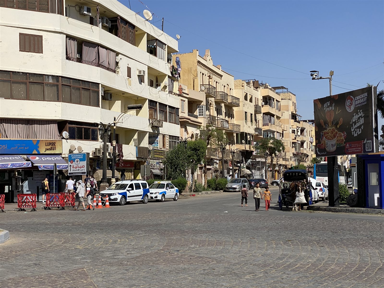 وبدت شوارع وميادين الأقصر الرئيسية مثل شارع التلفزيون والمدينة المنورة وميدان المحطة وميدان صلاح الدين شبه خاوية، إلا من المارة الذين يقضون طلباتهم من المحلات قبل موعد الإفطار.