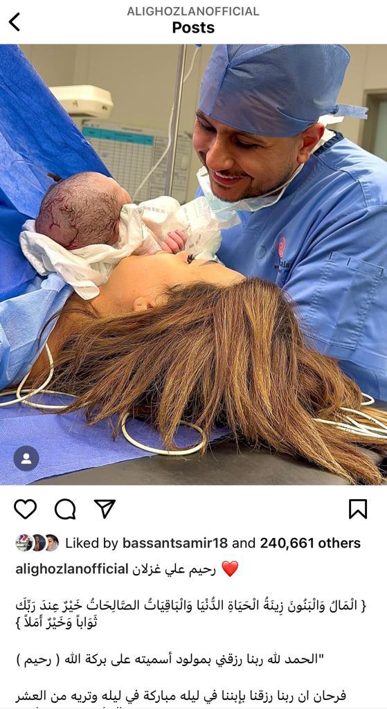 وكتب البلوجر علي غزلان معلقا على الصورة: رحيم علي غزلان.. الْمَالُ وَالْبَنُونَ زِينَةُ الْحَيَاةِ الدُّنْيَا وَالْبَاقِيَاتُ الصَّالِحَاتُ خَيْرٌ عِندَ رَبِّكَ ثَوَابًا وَخَيْرٌ أَمَلًا، الحمد لله ربنا رزقني بمولود أسميته على بركة الله رحيم، فرحان إن ربنا رزقنا بابننا في ليله مباركة في ليلة وترية من العشر الأواخر من رمضان، بارك الله لنا في الموهوب، وشكرنا الواهب وبلغ أشده ورزقنا بره اللهم أنبته نباتًا حسنًا وأجعله من الصالحين اللهم آمين.