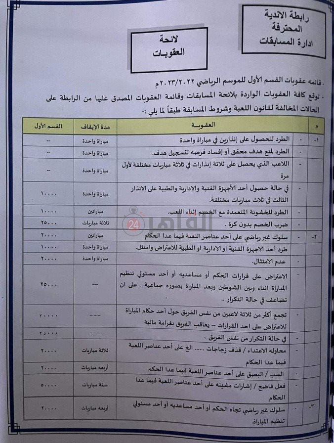 وتنص لائحة عقوبات رابطة الأندية لبطولة الدوري الممتاز للموسم الحالي، على إيقاف اللاعب الذي تعرض للطرد المباشر بسبب ضرب الخصم دون كرة، وغيابه 3 مباريات، وتغريمه 25 ألف جنيه.