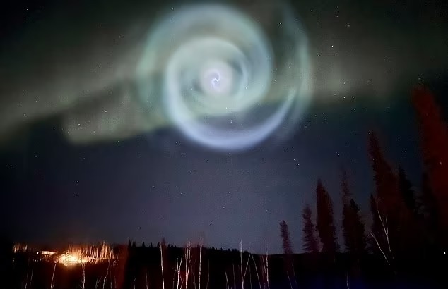 ويقول الخبراء إن شكلًا حلزونيًا غامضًا يمكن أن يظهر في سماء الليل عندما يخرج صاروخ من الوقود غير الضروري بعد الإطلاق، وعندما يتم إخراج الوقود، فإنه يتجمد ويتبلور على شكل حلزوني ثم تضيئه الشمس وتعطي تلك الصورة الغريبة.