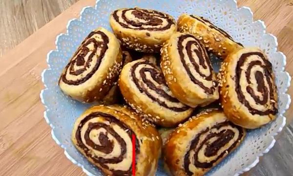 - الآن يتم فرد العجين.. ثم يوضع في المنتصف الملبن، ويرص في الصينية، ويترك لمدة 20 دقيقة، ثم يدخل الفرن على درجة حرارة 180 درجة، حتى يصبح لونه ذهبي.