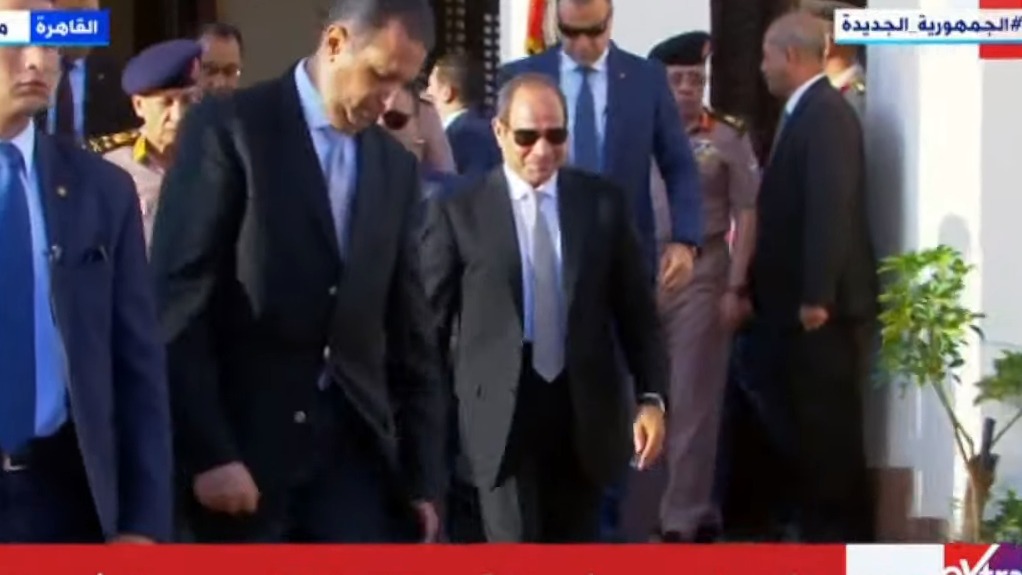 الرئيس السيسي يغادر مسجد المشير طنطاوي بعد تأدية صلاة العيد