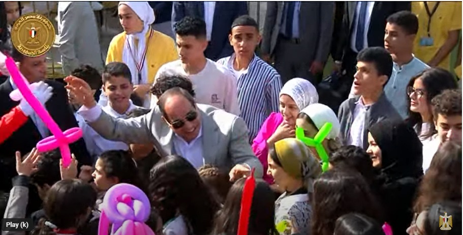 تجول الرئيس عبد الفتاح السيسي، رئيس الجمهورية، في قاعة مركز المنارة، حيث إقامة احتفالية، عيد الفطر المبارك، رفقة طفلين، واضعًا يده في أيديهم.