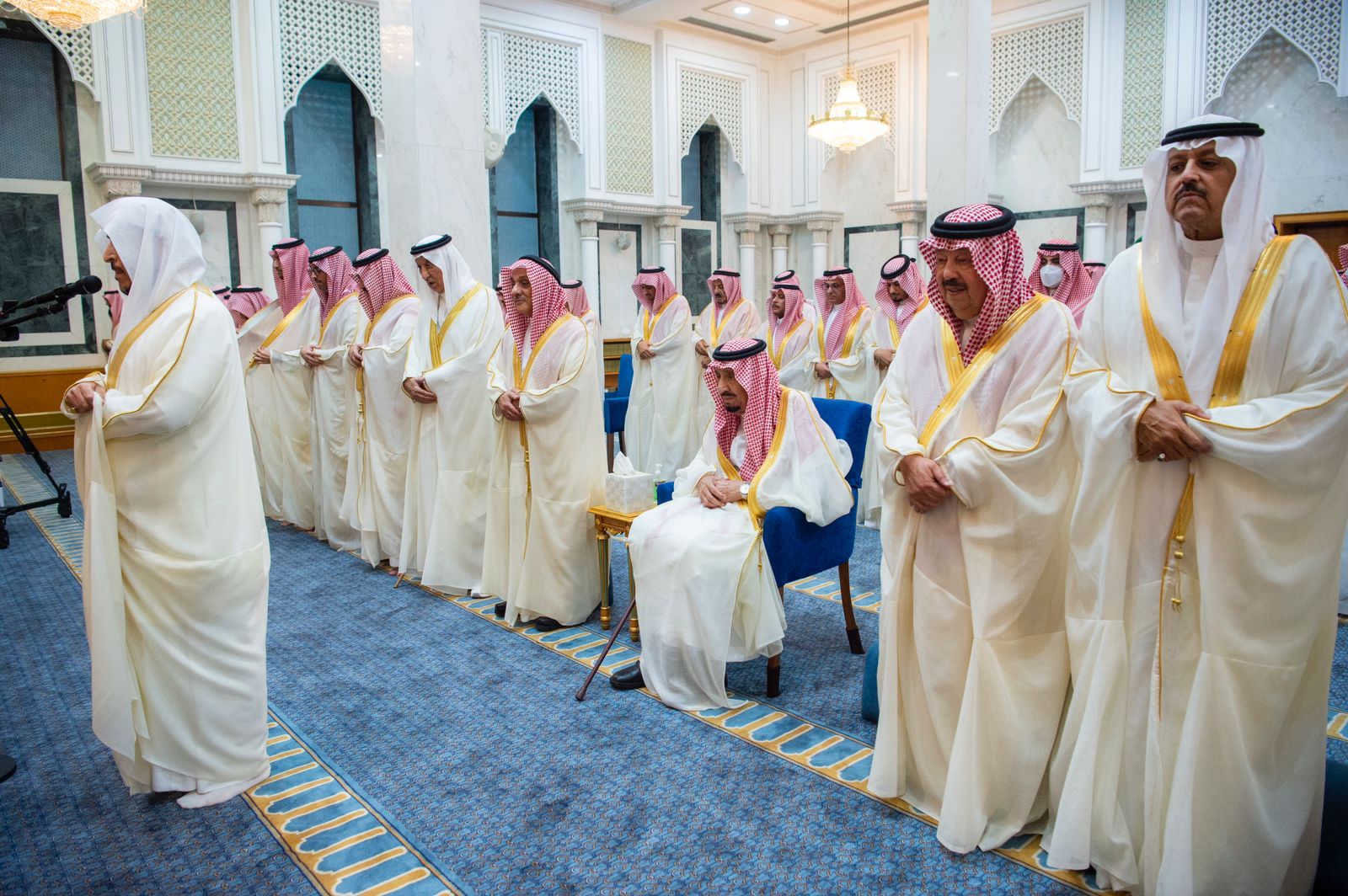 وأدى الصلاة مع خادم الحرمين الشريفين، كل من الأمير خالد بن فهد بن خالد، والأمير منصور بن سعود بن عبدالعزيز، والأمير خالد بن سعد بن فهد، والأمير سطام بن سعود بن عبدالعزيز، والأمير فيصل بن سعود بن محمد، والأمير الدكتور عبدالعزيز بن سطام بن عبدالعزيز مستشار خادم الحرمين الشريفين، والأمير بدر بن سلطان بن عبدالعزيز نائب أمير منطقة مكة المكرمة، والأمير سعود بن عبدالله بن جلوي محافظ جدة، والأمير سعود بن سلمان بن عبدالعزيز، والأمير فيصل بن أحمد بن سلمان بن عبدالعزيز، والأمير عبدالعزيز بن خالد بن سلمان بن عبدالعزيز، وعدد من أصحاب المعالي وكبار المسؤولين.