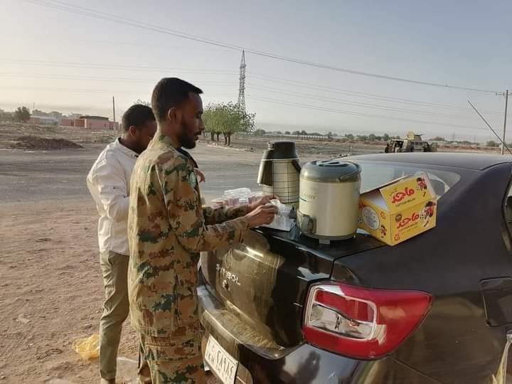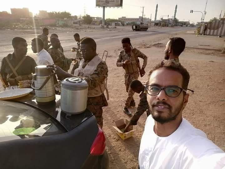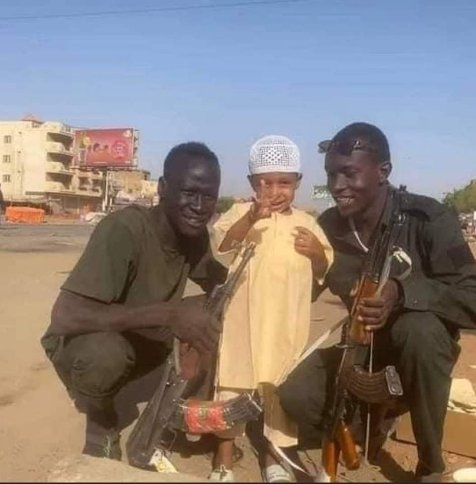احتفل المواطنين السودانيين اليوم الجمعة، مع عناصر الجيش السوداني بمناسبة حلول عيد الفطر المبارك، وذلك في اليوم السابع من الاشتباكات بين قوات الدعم السريع والجيش السوداني.