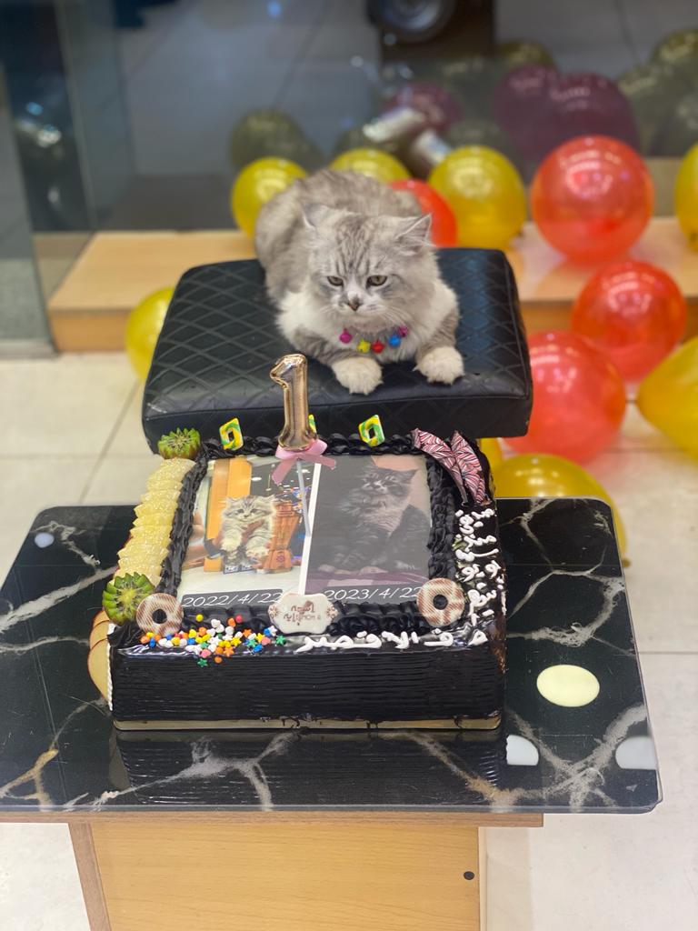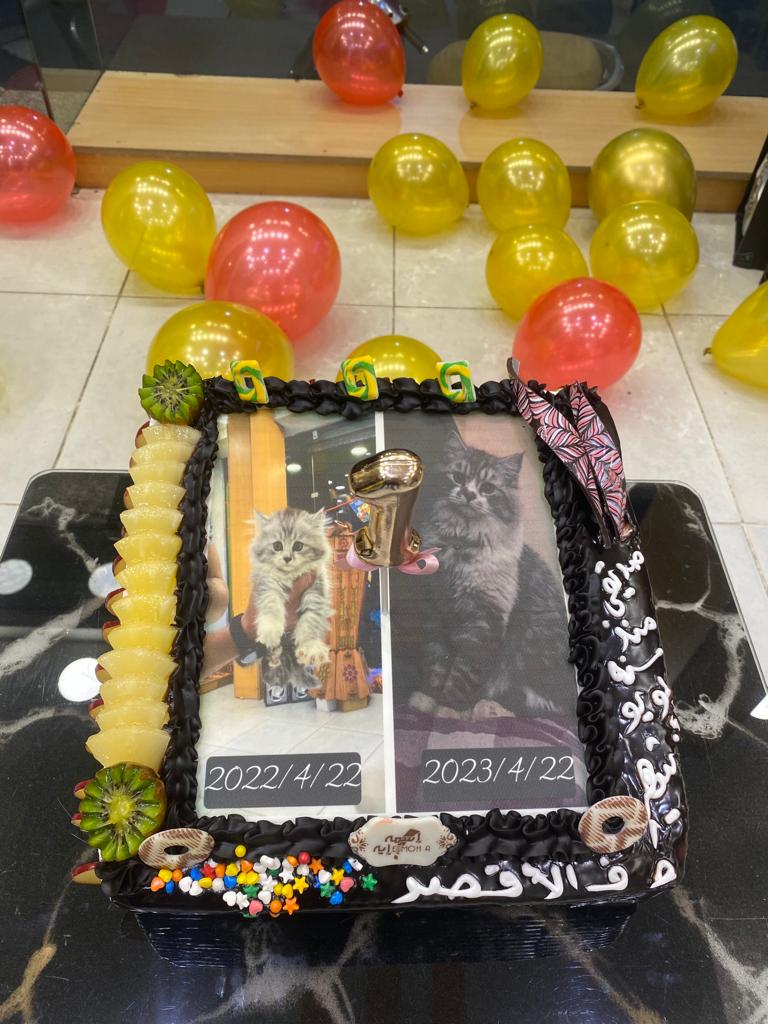 وأضاف صاحب القط أردت أن تكون مناسبة مرور عام على صداقتي واقتنائي للقط مميزة فاشتريت تورتة ورسمت عليها صورته بالشكولاتة والكريمة تكلفت 500 جنيه وأقمت حفلة تكلفت 1000 جنيه بالأطباق والشوك والبالونات والألعاب النارية وبعض التجهيزات الأخرى.