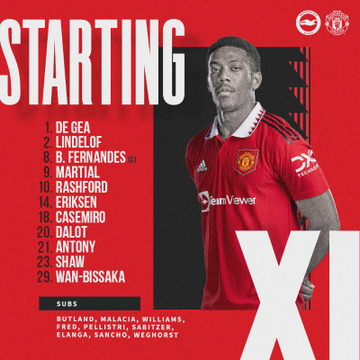 أعلن الهولندي إريك تين هاج مدرب فريق مانشستر يونايتد، التشكيل الرسمي لمواجهة نظيره برايتون، في إطار منافسات نصف نهائي كأس الاتحاد الإنجليزي.