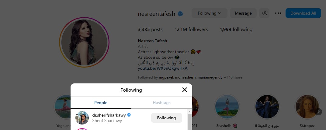 تراجعت الفنانة السورية نسرين طافش عن إلغاء متابعة طليقها الدكتور شريف الشرقاوي وذلك على موقع تبادل الصور والفيديوهات إنستجرام.