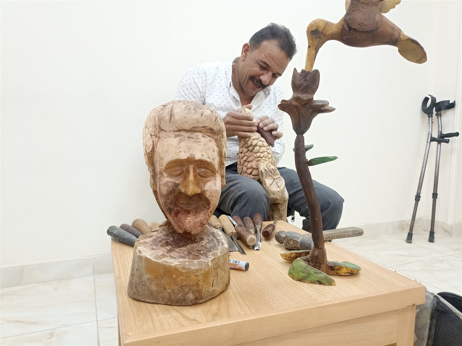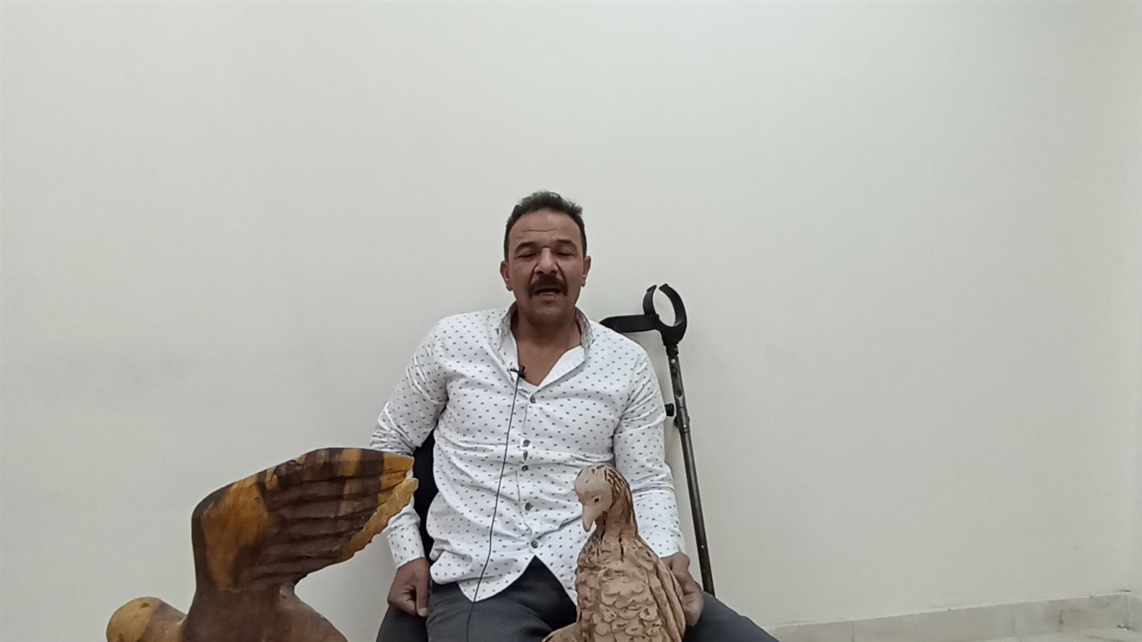 وتابع: عقب عودتي إلى مصر لاستكمال العلاج ظللت لفترة ملازمًا للفراش، ثم قررت ممارسة الرياضة وهوايتي المفضلة في النحت على الأخشاب والأحجار، حتى استطعت أن أُبدع بهما وأقهر الإعاقة، حتى أثبتّ للجميع أنه لا إعاقة مع الإرادة.
