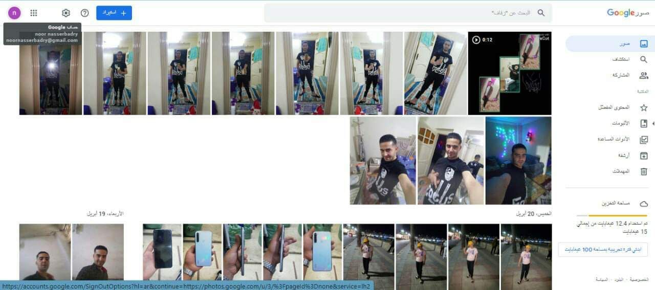 واستكملت نور ناصر: وقتها حاولت أخرج من كل الاكونتات بتاعتي اللي موجودة على وسائل التواصل الاجتماعي، بس نسيت أطلع من أكونت جوجل، وبالصدفة امبارح دخلت على أكونت Google photos، وللقيت انه متصور بالموبايل، وحصلها backup على أكونت جوجل، ودا اللي ظهرها عندي.