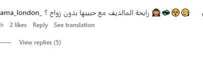 وعلقت إحدى المتابعات على صور نادين نسيب وخطيبها قائلة: رايحة المالديف مع حبيبها بدون زواج؟، بينما علق أحد المتابعين، قائلا: حسبي الله ونعم الوكيل شكل مخزي وفاضح أعوذ بالله.