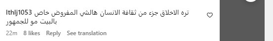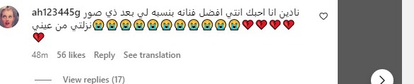 كما انتقدت إحدى المتابعات صور نادين نسيب مع خطيبها، قائلة: الأخلاق جزء من الثقافة وهذا الشيء المفروض خاص بالبيت وليس الجمهور، بينما علق متابع آخر، قائلا: نادين أنا أحبك أنتي أفضل فنانة بالنسبة لي ولكن بعد هذه الصور نزلتِ من نظري.