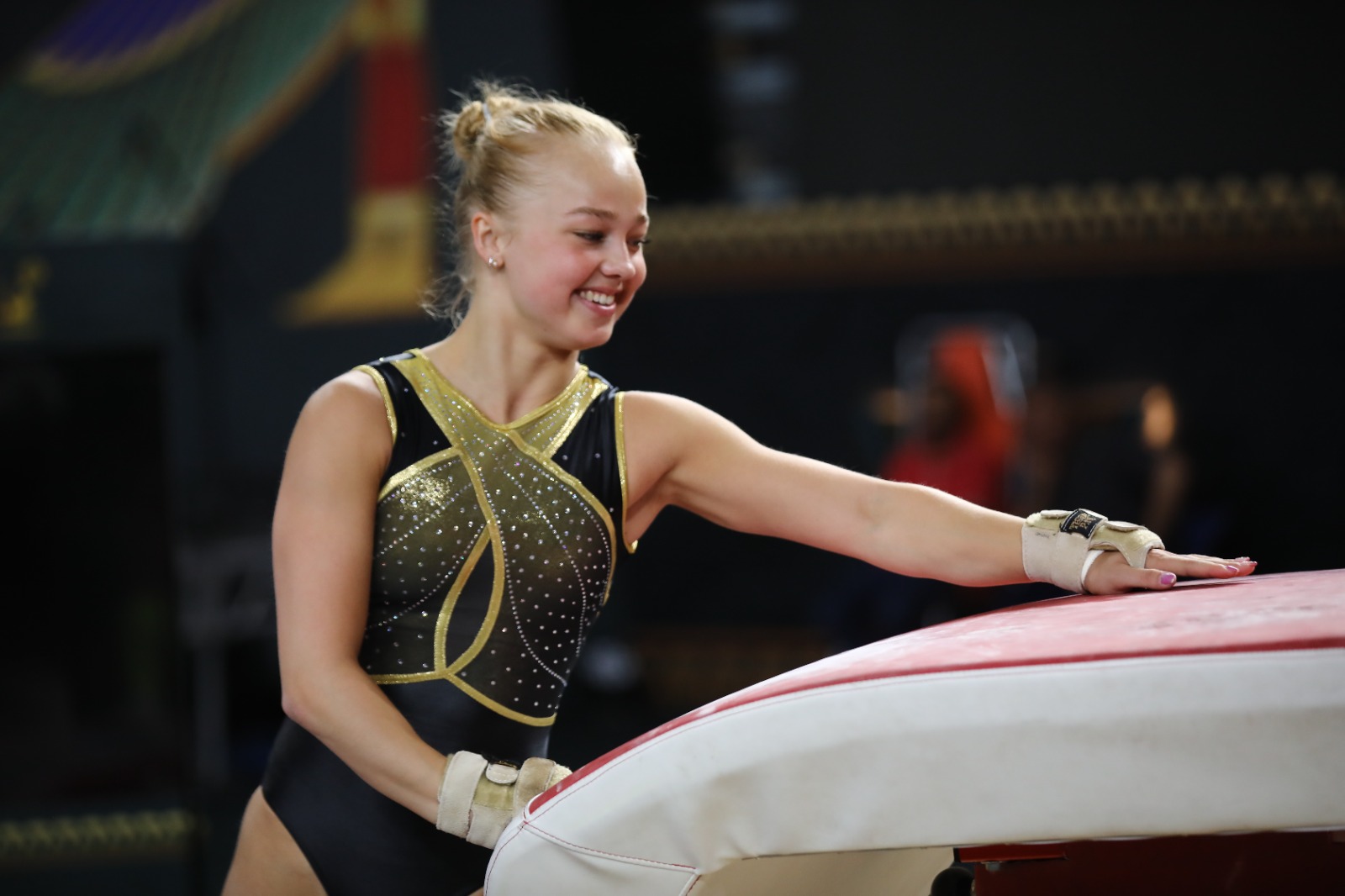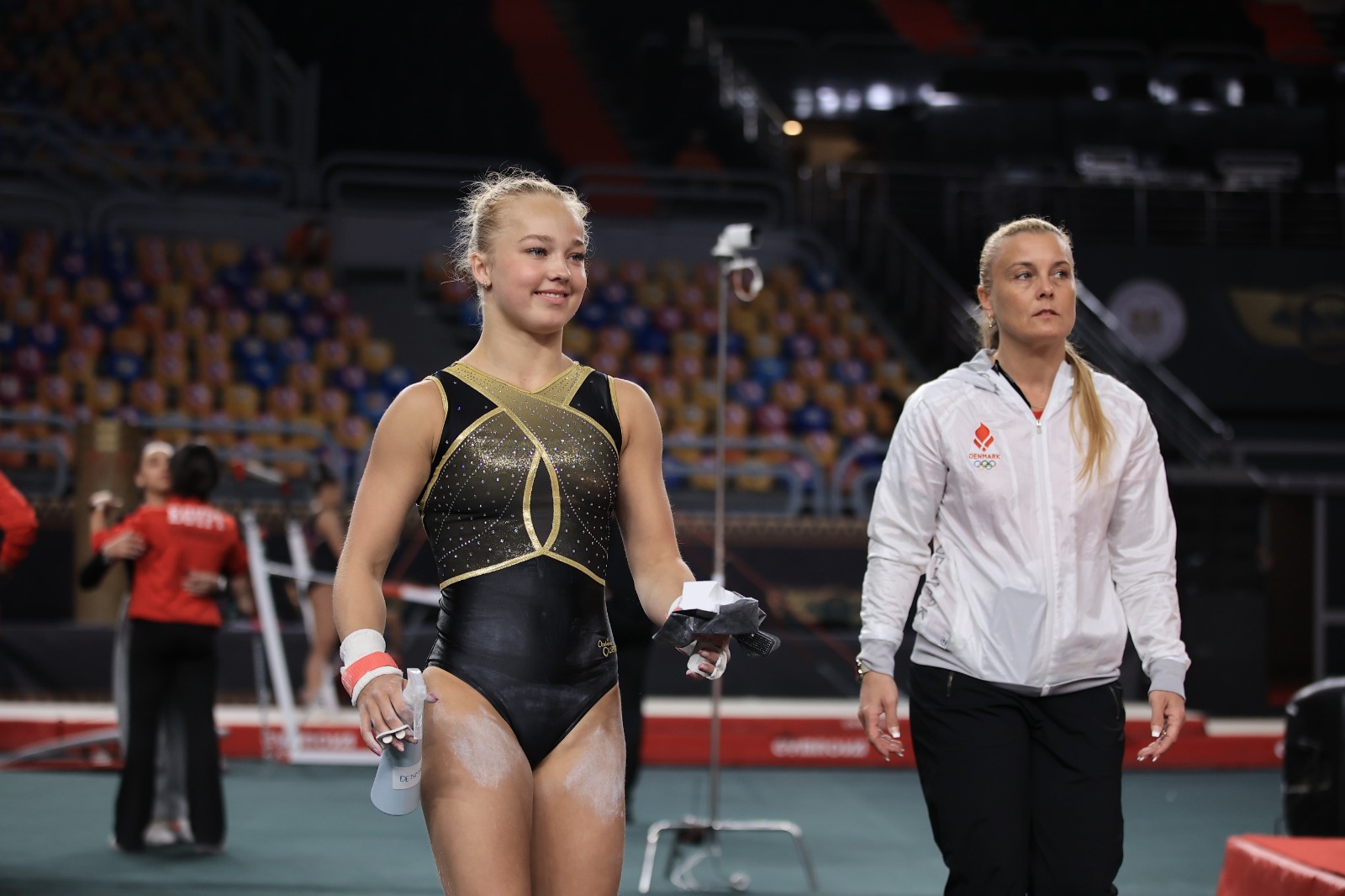 منتخبات كأس العالم للجمباز تؤدي تدريباتها بالصالة المغطاة | صور