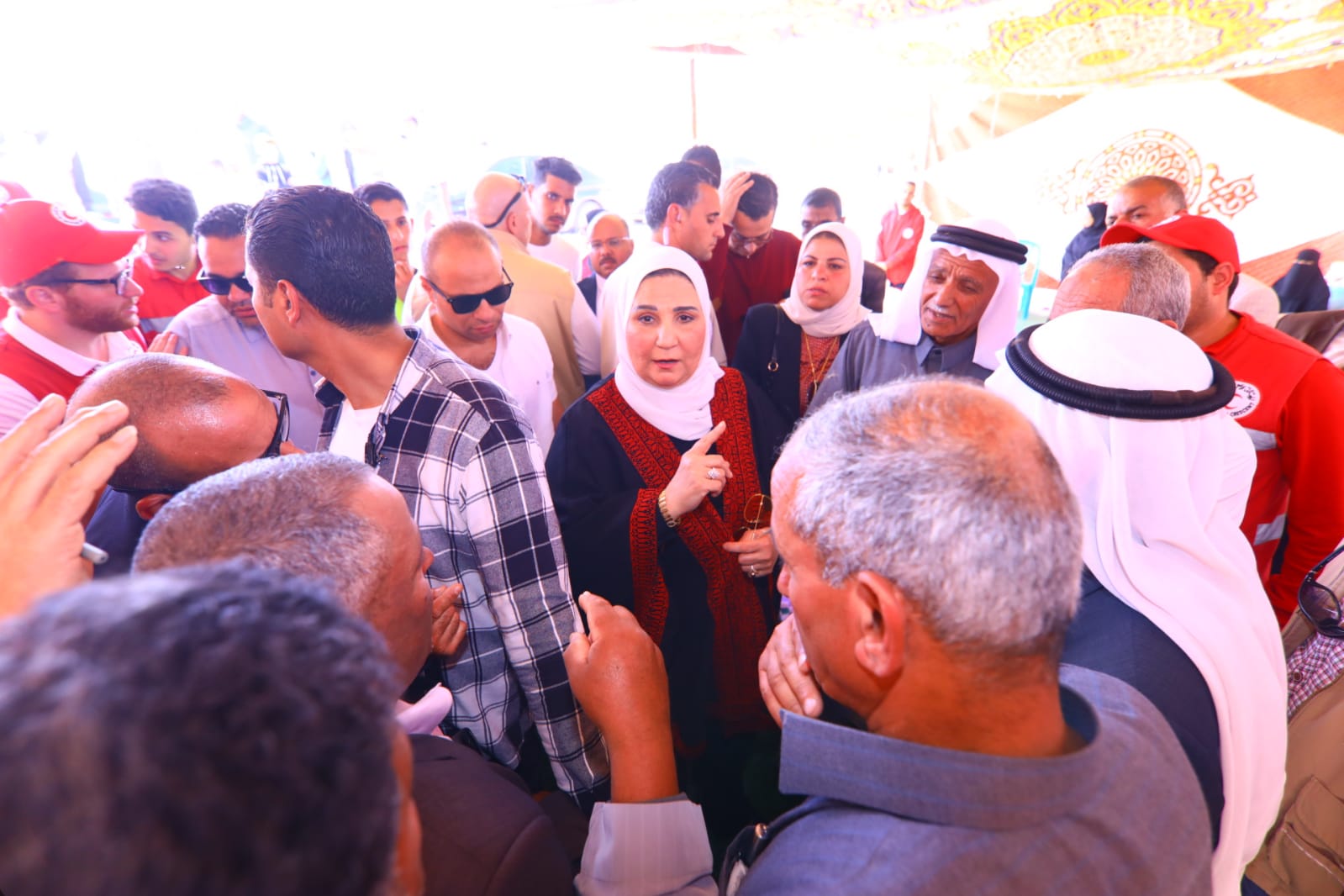 وزيرة التضامن تلتقي أسر شهداء بئر العبد وصيادي البردويل ومتطوعي الهلال الأحمر بشمال سيناء | صور