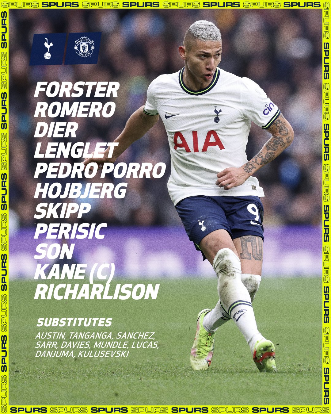 في حين قرر المدرب المؤقت رايان ماسون، المدير الفني لفريق توتنهام هوتسبير، أن يدخل مباراة فريقه، بتشكيل مكون من:-