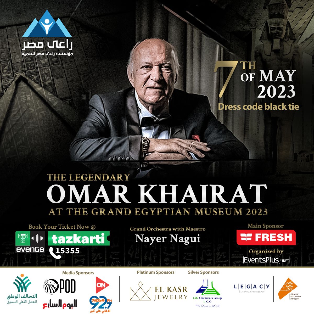 يقيم الموسيقار الكبير عمر خيرت يوم الأحد الموافق 7 مايو المقبل، حفلًا كبيرًا في المتحف المصري الكبير، وتنوعت فئات تذاكر الحفل بين 5 فئات، لتبدأ من 1500 جنيه، وتصل إلى 5000 آلاف جنيه.