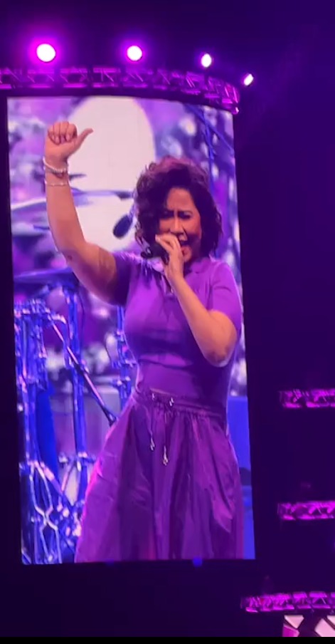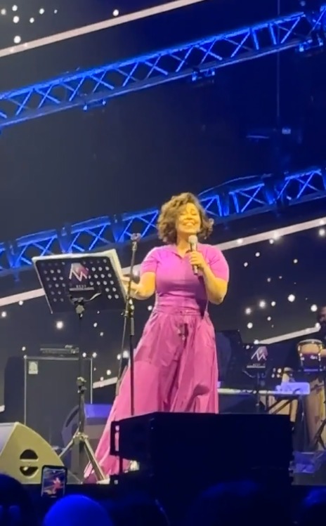 وتفاعل الجمهور مع الفنانة شيرين عبد الوهاب فور صعودها على المسرح، ثم وجهت لهم التحية، وبدأ الحفل بأغنيتها الشهيرة كلها غيرانه، وارتدت الفنانة شيرين عبد الوهاب فستانًا بنفسجيًا اللون.
