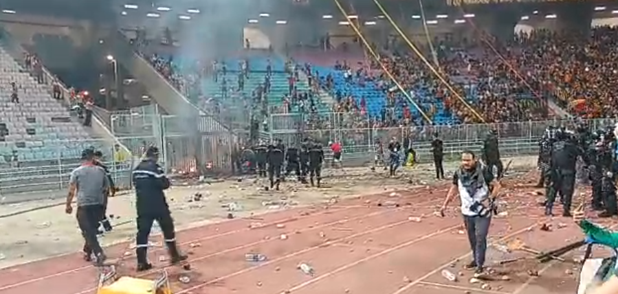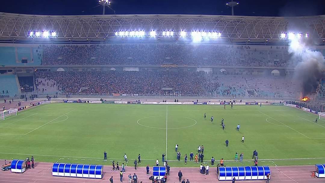 وتوقفت مباراة التونسي وشبيبة القبائل الجزائري بعد نهاية الشوط الأول، بعد ان اعتدت جماهير الترجي التونسي على جماهير فريق شبيبة القبائل في ملعب رادس، وهاجموهم بالشماريخ والنيران.