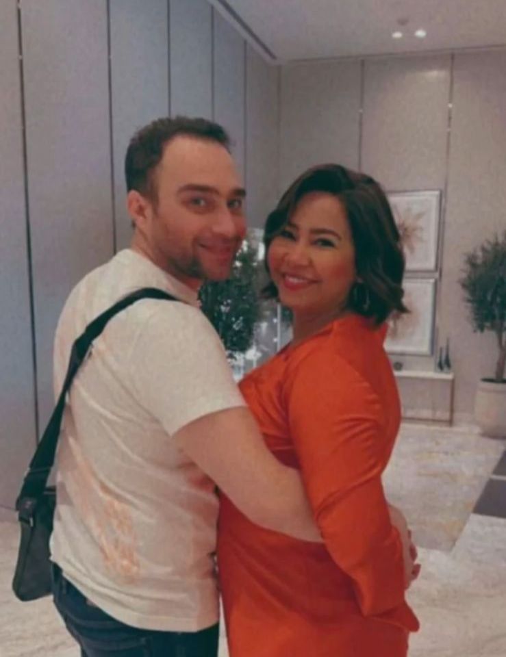 وظهرت شيرين عبد الوهاب في الصور المتداولة ترتدي فستانا طويلا باللون البرتقالي وتركت شعرها منسدلًا وبجانبها زوجها الفنان حسام حبيب.