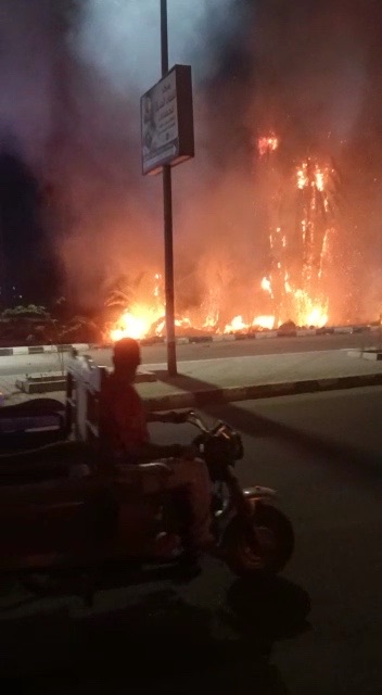 اندلع حريق كبير بمجموعة من أشجار النخيل الموجودة على جانب الطريق بميدان الصنايع الممتد من شارع التليفزيون بوسط مدينة الأقصر.