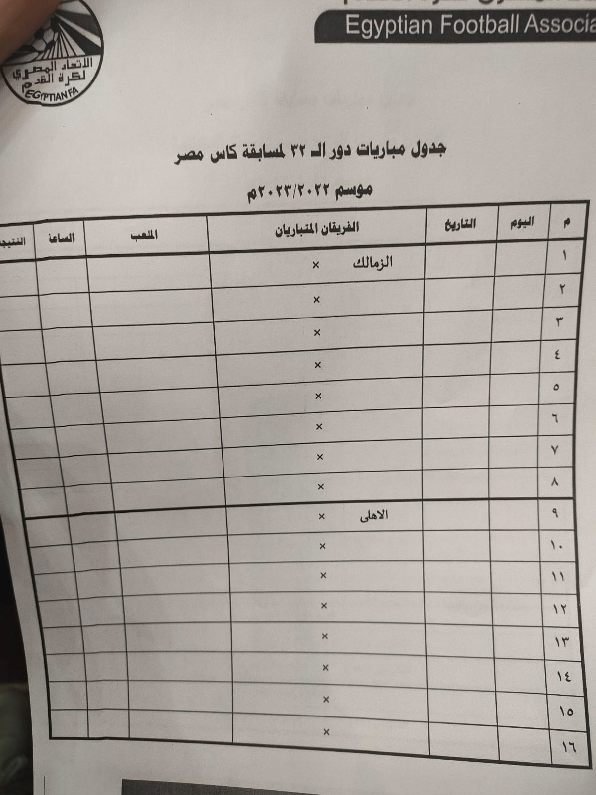 ومن المقرر أن تقام مباريات دور الـ 32 لبطولة كأس مصر خلال الفترة من 6 وحتى 12 مايو الجاري، وذلك وفقًا للموعد الذي حددته إدارة المسابقات وأخطرت به أندية الدوري الممتاز ضمن جدول الدوري الذي تم إرساله إليهم قبل أيام والذي تضمن مواعيد 3 جولات من بطولة الدوري بجانب مواعيد بعض المباريات المؤجلة.