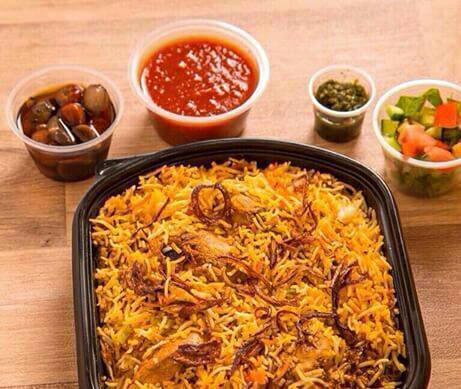 - يقدم مع طبق المندي باللحم والأرز البسمتي.