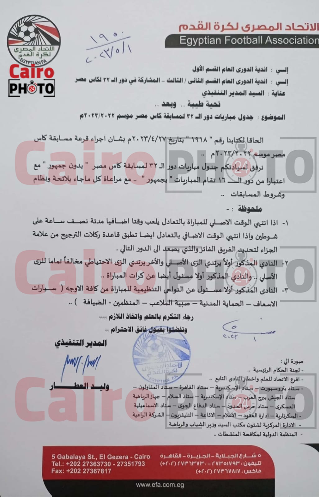 أخطر اتحاد الكرة الأندية المشاركة في بطولة كأس مصر بشروط ونظام وتعليمات المسابقة، وذلك بعد ساعات من إجراء قرعة دور الـ32 للبطولة.