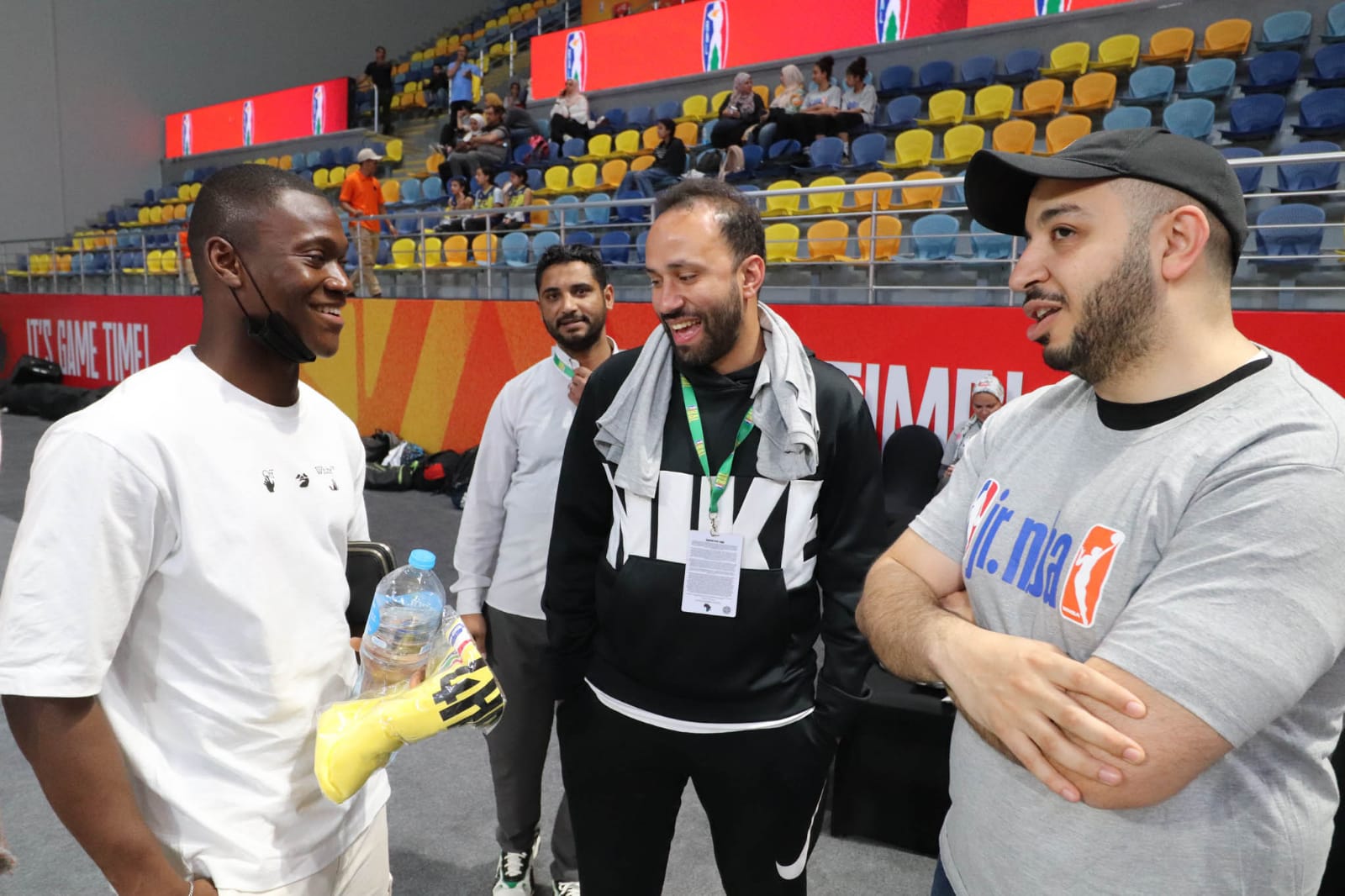 وتواجد المالي أليو ديانج لاعب النادي الأهلي لكرة القدم في صالة حسن مصطفى، على هامش ورشة العمل بعد دعوته من جانب مسئولي الـ BAL والـ NBA Egypt.