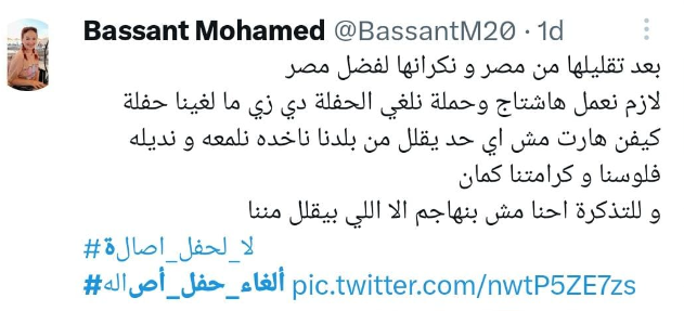 بينما قال آخر: أي حد ينكر الجميل ما يستاهل نكتب اسمه، بس لازم يبقي لينا صوت علشان تعرف قيمتها، وياريت المسؤلين يغيروها، أصالة من ضمن البني آدمين اللي أنكرت فضل مصر عليها، متستحقش الفرصة دي، وقالت إن تاريخها كله مدينة به للسعودية طول حياتها، في فنانين مصريين أحق منها بالفرصة، وبيحبوا البلد دي أكتر منها ويستحقوا فرصة الغناء أكتر.
