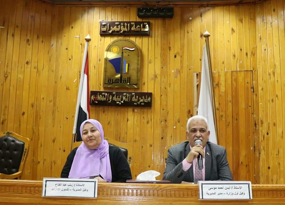 اجتمع أيمن موسى مدير مديرية التربية والتعليم بمحافظة القاهرة، وزينب عبد الفتاح وكيل المديرية لشئون الإدارات التعليمية اليوم الثلاثاء، مع مديري عموم ووكلاء الإدارات التعليمية وقيادات المديرية بقاعة الاجتماعات بديوان عام المديرية.