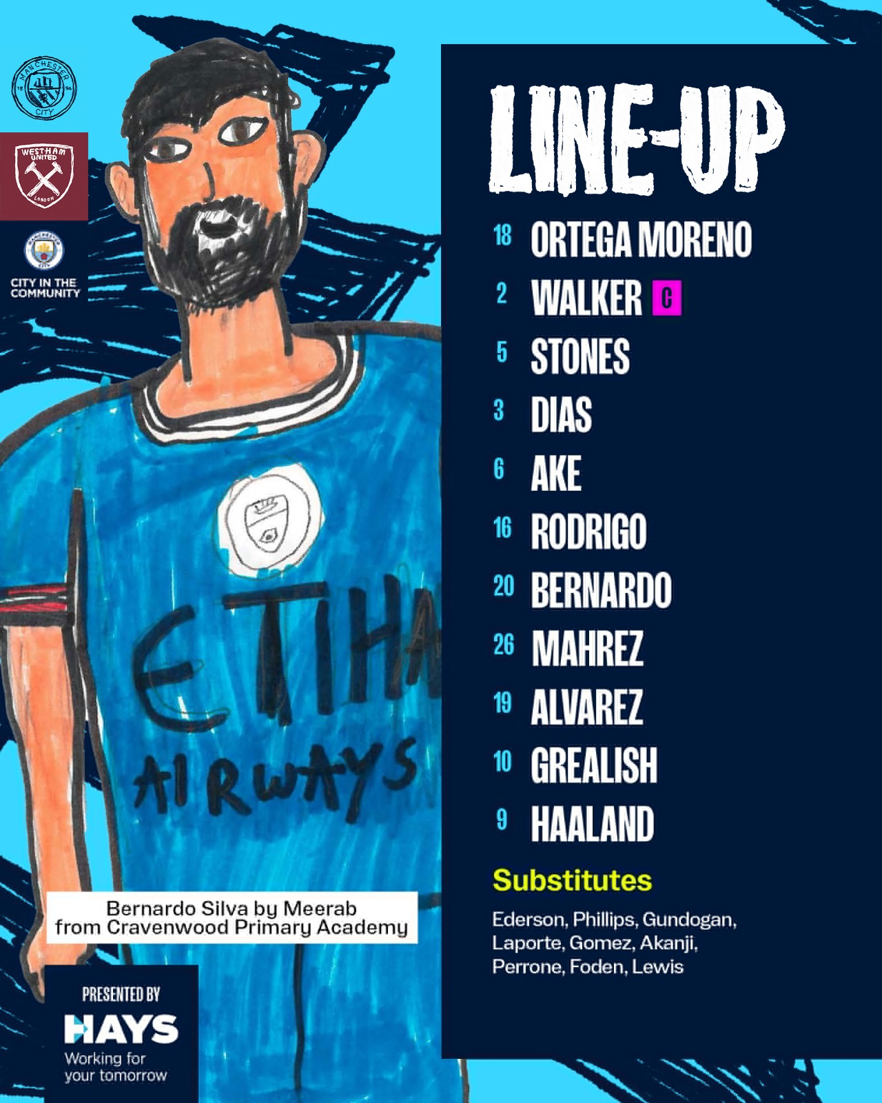 خط الوسط: رودري، برناردو، ستونز.