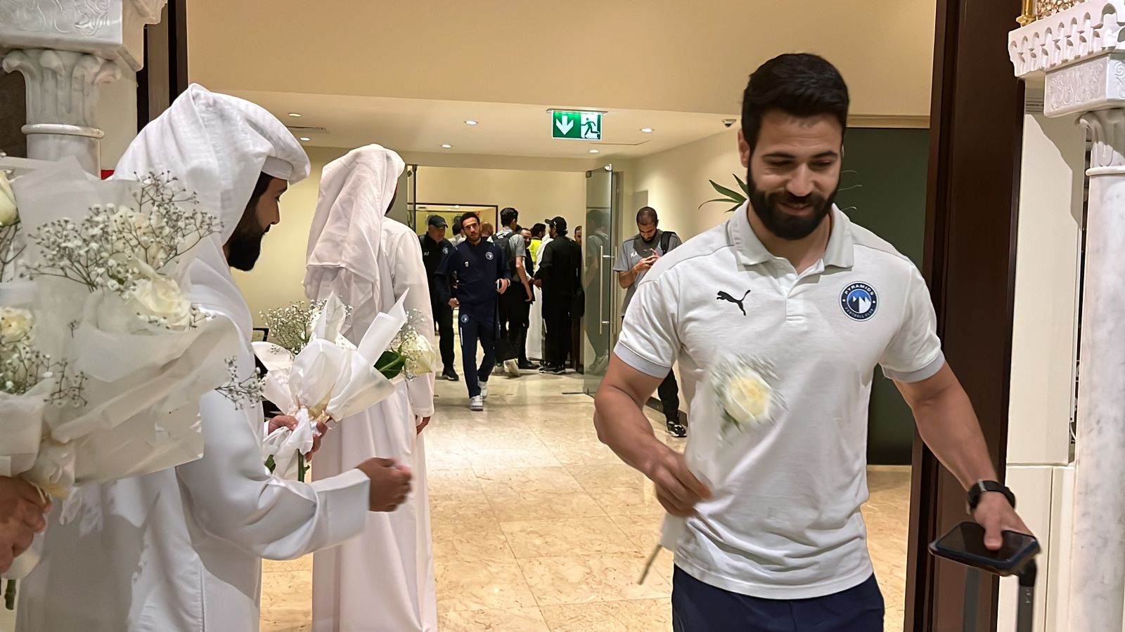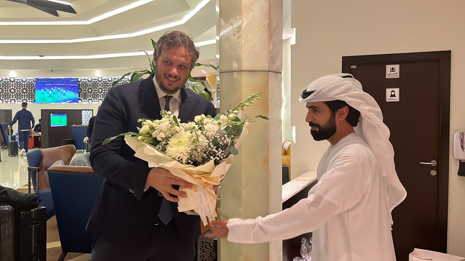 استقبال بالورود لبعثة بيراميدز في أبو ظبي بصالة كبار الزوار