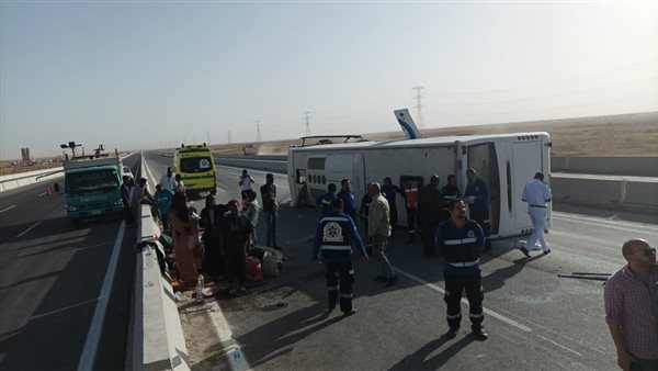 إصابة 36 سودانيا ومصريين اثنين إثر انقلاب أتوبيس بصحراوي بني سويف