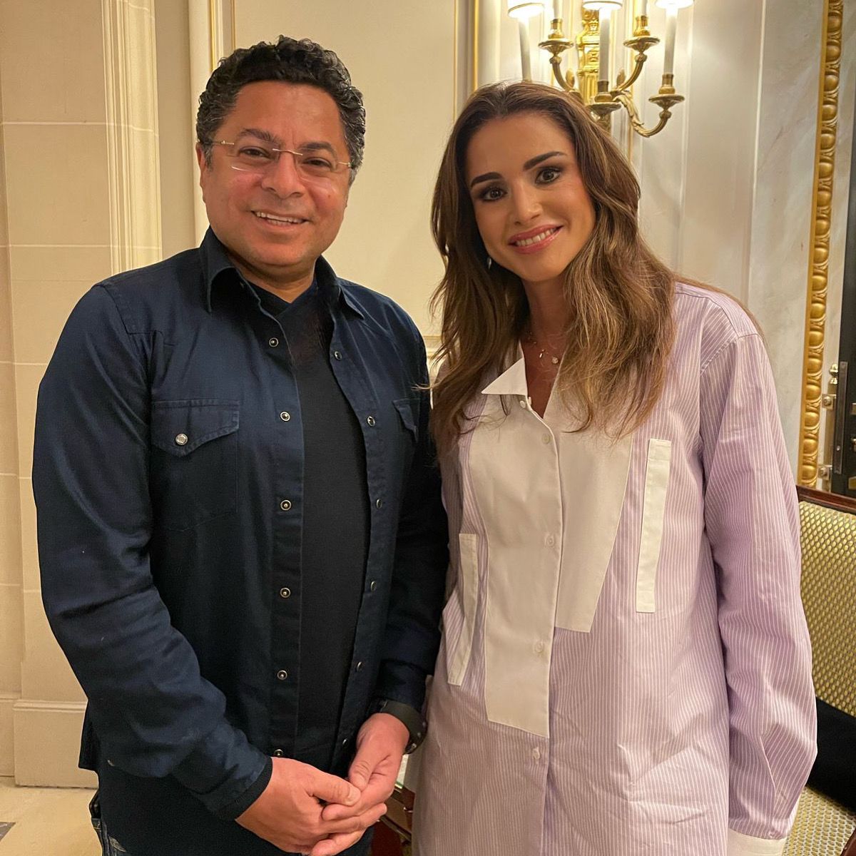 خالد أبو بكر ينشر صورة تجمعه بالملكة رانيا العبد الله ملكة الأردن