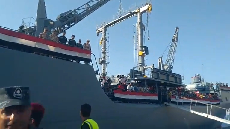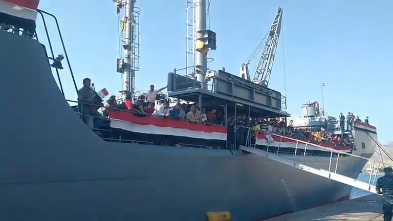زين ميناء سفاجا البحري بالبحر الأحمر، صباح اليوم الثلاثاء، بأعلام مصر والأغاني الوطنية لاستقبال المصريين والأجانب القادمين من السودان.
