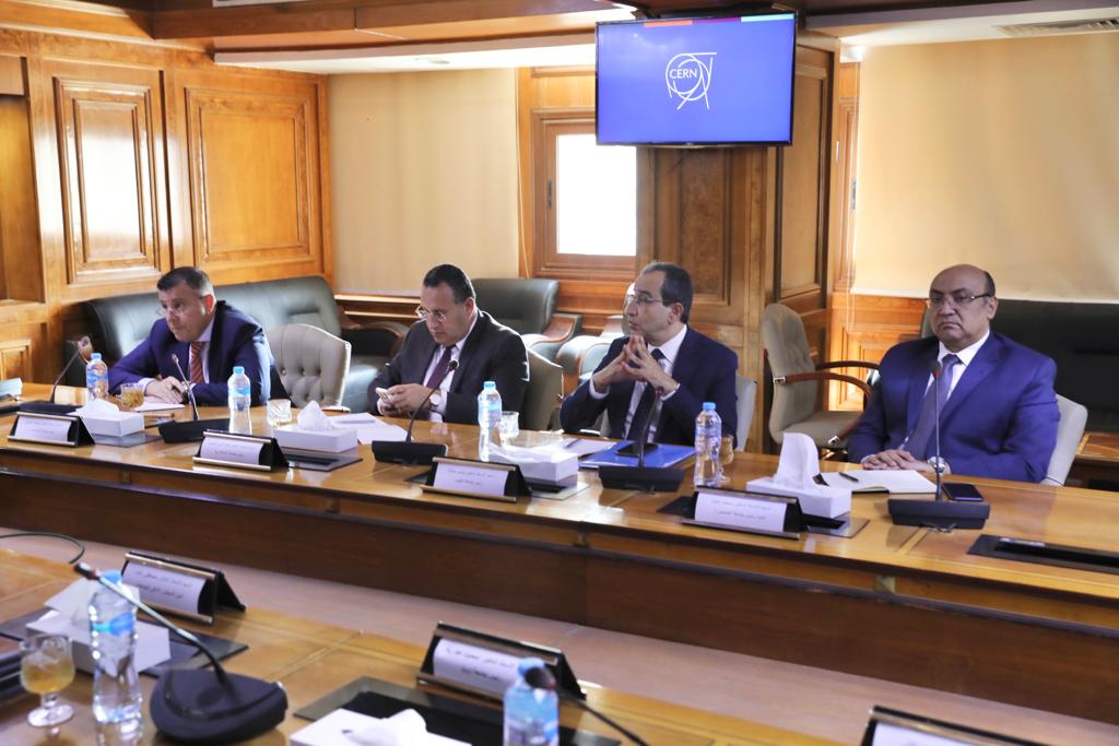 ومن جانبه، أشار الدكتور محمود صقر إلى أن عام 2006 تم توقيع اتفاقية تعاون دولي بين منظمة CERN ووزارة التعليم العالي والبحث العلمي ممثلة فى أكاديمية البحث العلمي والتكنولوجيا، وفى عام 2008 شكلت 5 جامعات مصرية وهي: الجامعة البريطانية فى مصر، والقاهرة، وحلوان، وعين شمس، وقناة السويس، إضافة إلى الشبكة المصرية لفيزياء الطاقة العالية والتي مثلت الكيان المصري لدى المنظمة، لافتًا إلى انضمام مدينة زويل للشبكة المصرية لفيزياء الطاقة العالية عام 2011، موضحًا أنه في عام 2012 تم توقيع بروتوكول تعاون بين الأكاديمية والمنظمة بشأن مشاركة الجامعات والمؤسسات العلمية المصرية فى تجربتي فيزياء الطاقة العالية، والانضمام إلى CMS كأعضاء كاملين وALICE كأعضاء منتسبين.