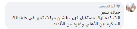 وقال حساب آخر: انت كده ليك مستقبل كبير علشان عرفت تميز في طفولتك المبكرة بين الأهلي وغيره من الأندية، عارف مصلحته من الصغر. واختار الفريق اللي هيفرحه طول حياته. ولا فيه غيره يفرحني.